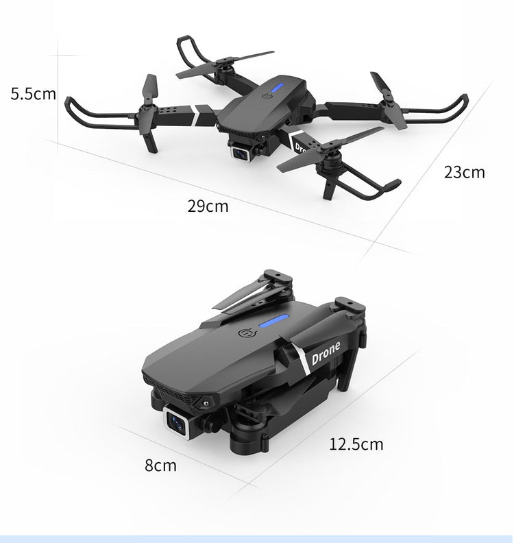 Up/down, Forward/backward, Turn left/right, Sideward flight, 3-level flight speed, LED Light, Headless Mode, One Key Automatic Return, Altitude Hold Mode, WiFi FPV, Trajectory Flight, Camera/Video